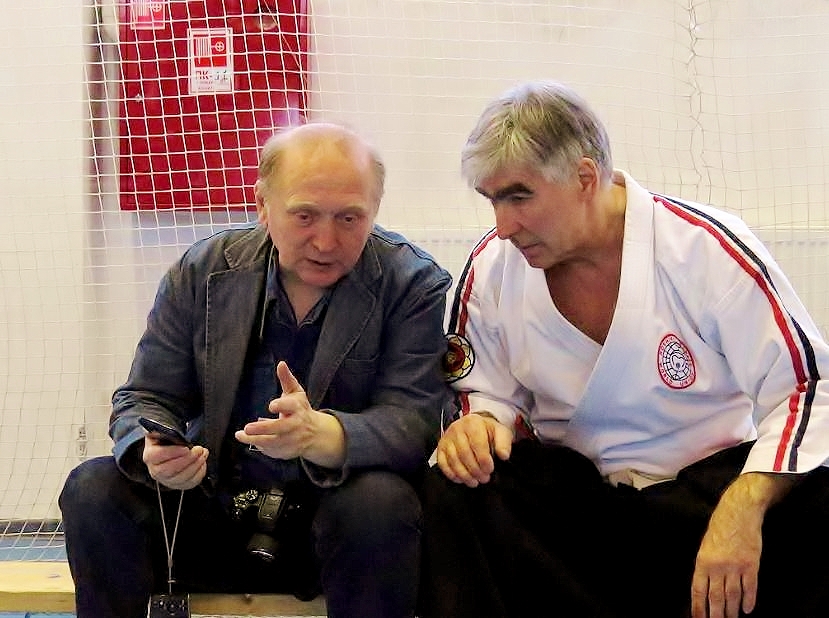 На фото Юрия Узорина один из рабочих моментов Кубка России по Косики каратэ 2015 в Долгопрудном. Председатель НСНБР А.Г.Огнивцев (вице-президент ФККР) и президент Федерации Косики каратэ России Ханси М.В.Крысин обсуждают вопросы продвижения информации в Интернете.